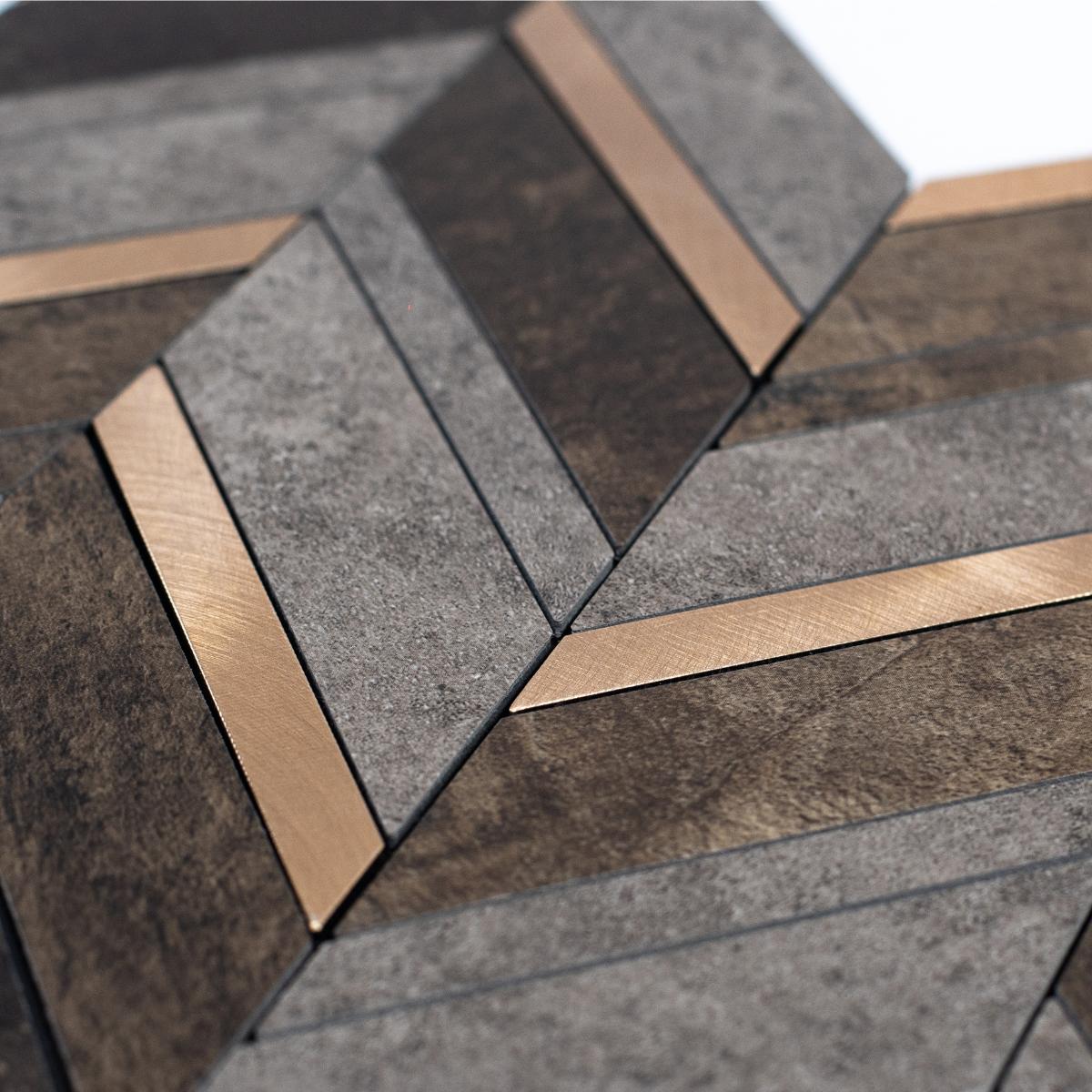 Urban Arrow blends modern sophistication with industrial character. This chevron-patterned panel combines warm bronze accents with cool grey and black tones, creating a dynamic contrast. Made from durable PCV and aluminium composite, it’s perfect for stylish feature walls, kitchens, or commercial spaces.